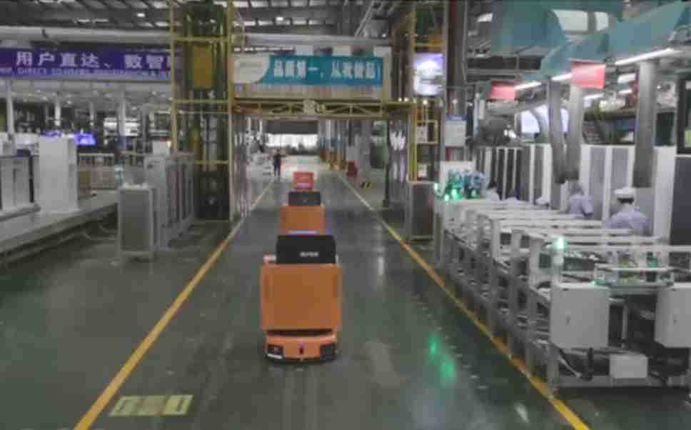 为车载冰箱物流配送打造的智能解决方案,,,,包含产中物流通过潜伏举升AMR搬运至线边,,,,产后成品物流智能仓储,,,,流程包含产中物流智能齐套入库,,,线边安灯叫料AMR智能配送至线边,,,成品入库、、出库,,,,通过无人堆高车机器人,,,智能仓储管理替代人工作业管理,,,,实现更高存储、、、更高效率、、更具柔性化的解决方案。。。。